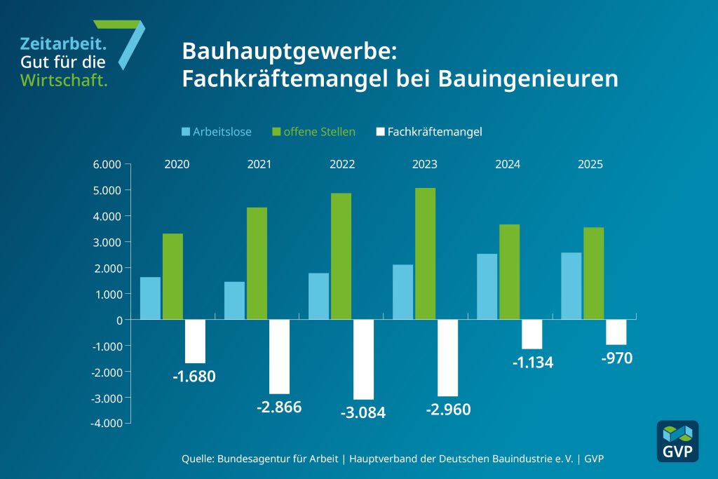 Hintergrund: Das Baugewerbe ist stark vom Fachkräftemangel betroffen. Umso realitätsfremder wirkt das aus dem Jahr 1982 stammende Verbot der Zeitarbeit im Bauhauptgewerbe (§ 1b Arbeitnehmerüberlassungsgesetz).