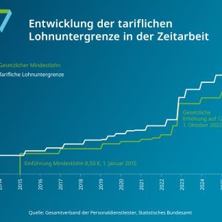 Tarifverträge haben eine maßgebliche Gestaltungskraft in der Zeitarbeit – zum Beispiel bei der deutlich über dem allgemeinen Mindestlohn liegenden Lohnuntergrenze, beim tarifvertraglich vereinbarten Equal Pay durch Branchenzuschlagstarifverträge und bei der Schließung der Lohnlücke zwischen Zeitarbeitskräften und Stammbeschäftigten (lt. RWI-Studie: 2,6 Prozent). Weitere gesetzliche Regularien und Eingriffe in die Tarifautonomie sind daher unverhältnismäßig.