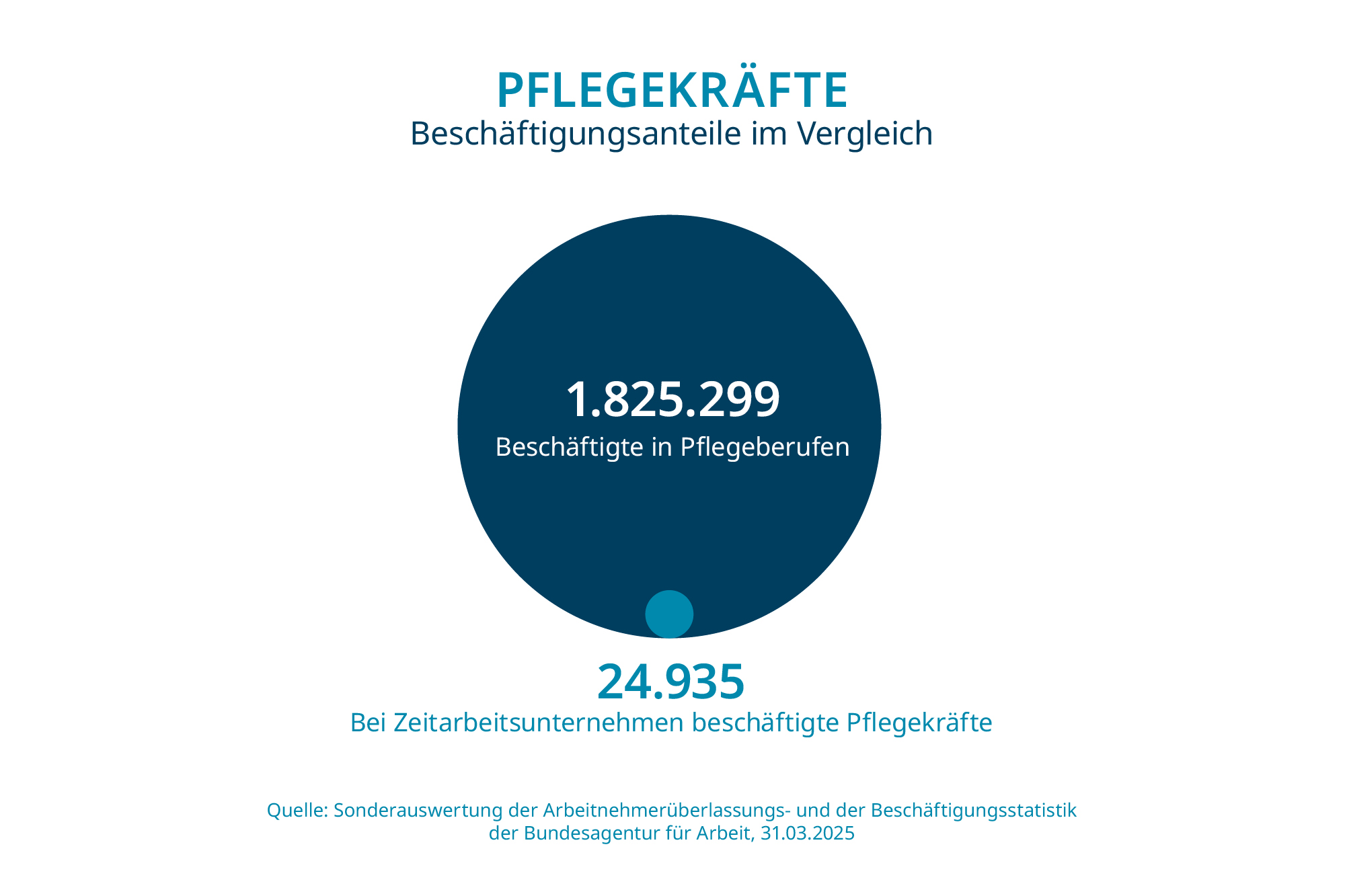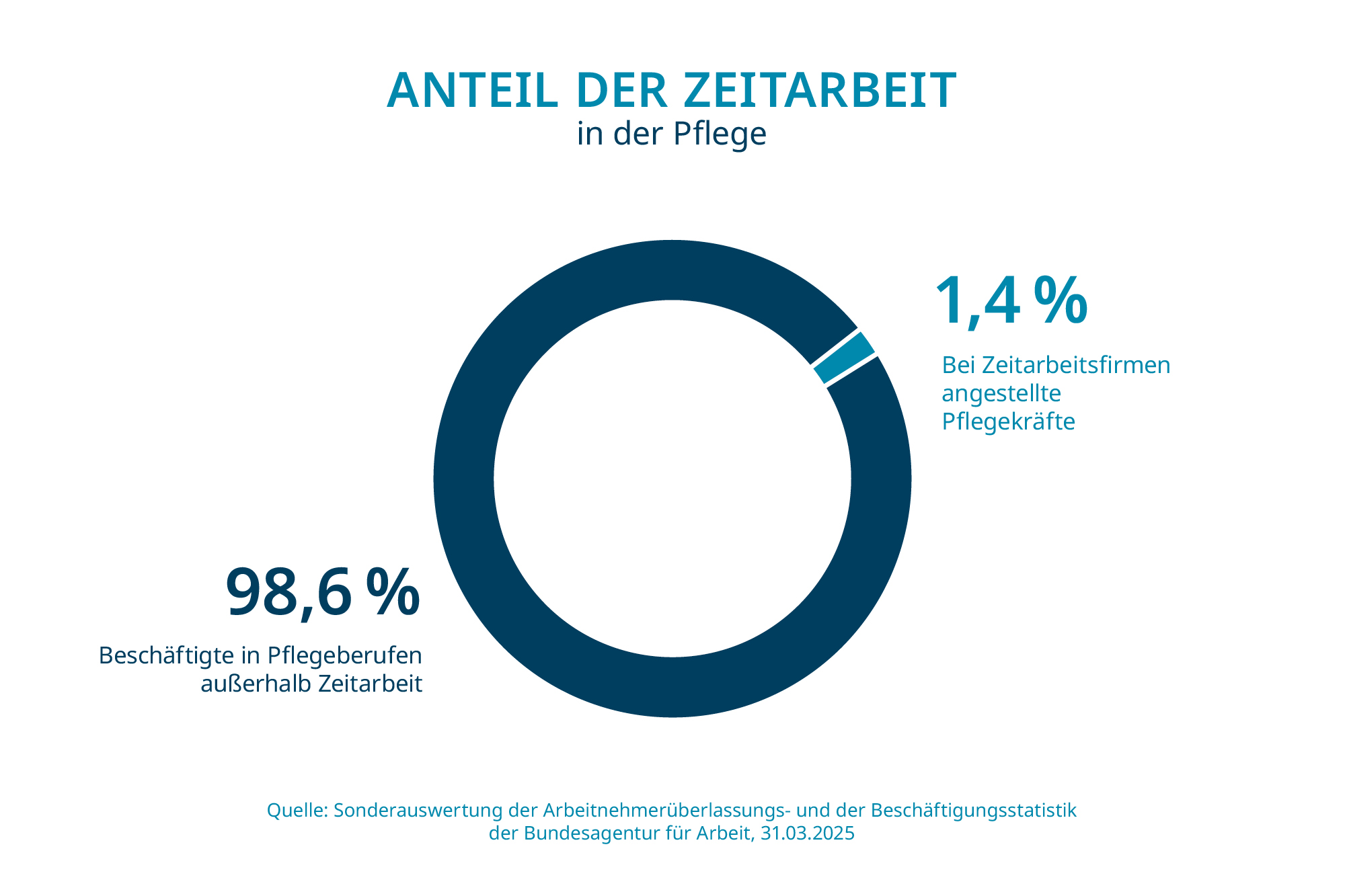 1,4 % aller in Pflegeberufen tätigen Personen sind bei Zeitarbeitsunternehmen beschäftigt.