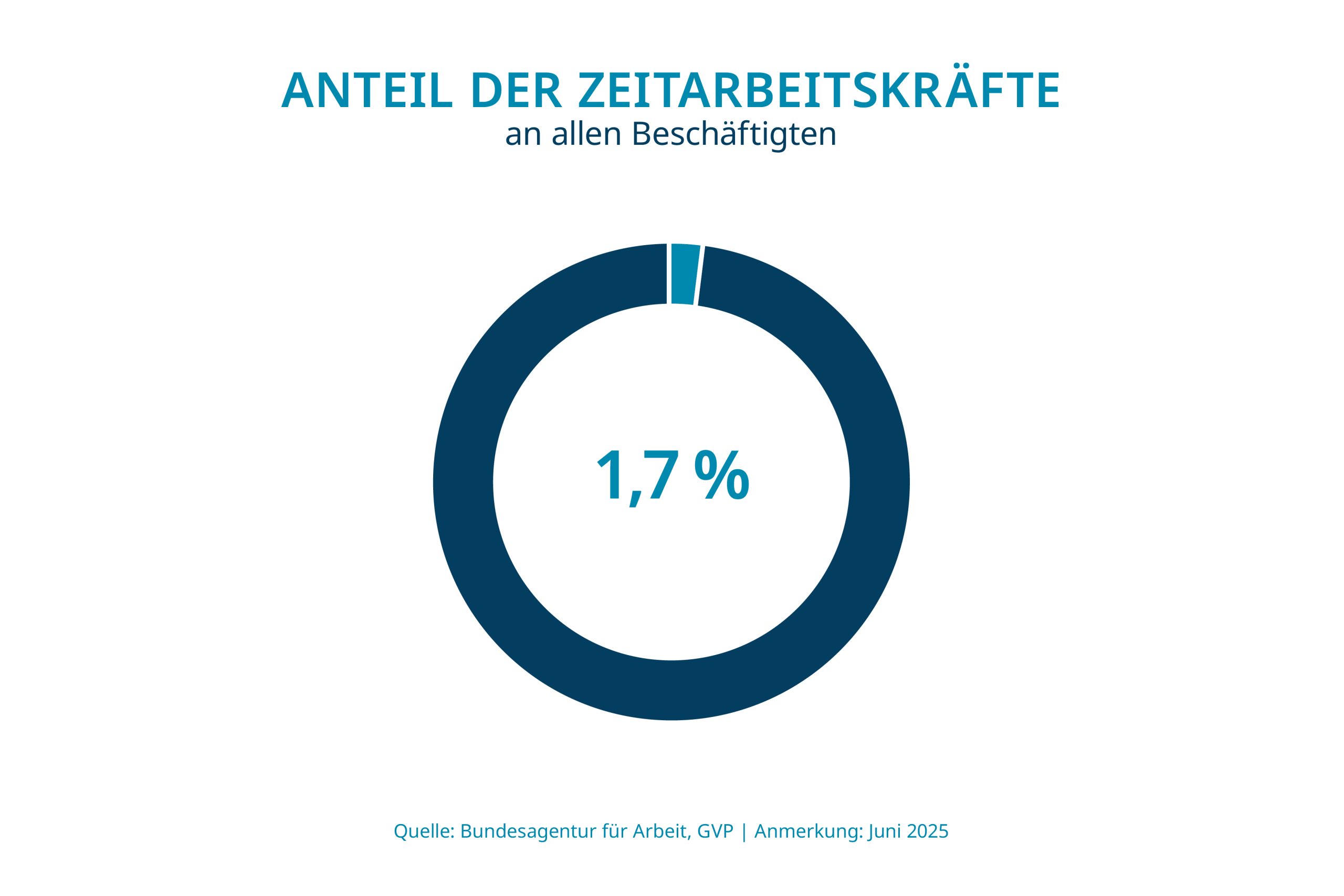 Die wichtigsten Zahlen, Daten und Fakten zur Zeitarbeit auf einen Blick: Kompakt grafisch aufbereitet finden Sie hier die aktuellen Kennzahlen der Zeitarbeitsbranche. Ausführlicher wird es in ausgewählten Studien und in der GVP-Mitgliederinfo „Analyse“, mit der wir regelmäßig über wichtige Daten und wirtschaftliche Entwicklungen aus und für die Branche der Personaldienstleister berichten. Unter dem Schlagwort "Fakt ist..." klären wir zudem über die häufigsten Vorurteile gegenüber der Zeitarbeit auf.