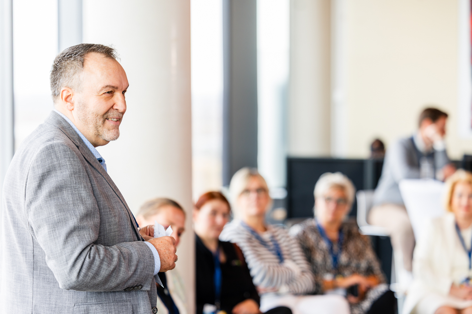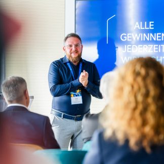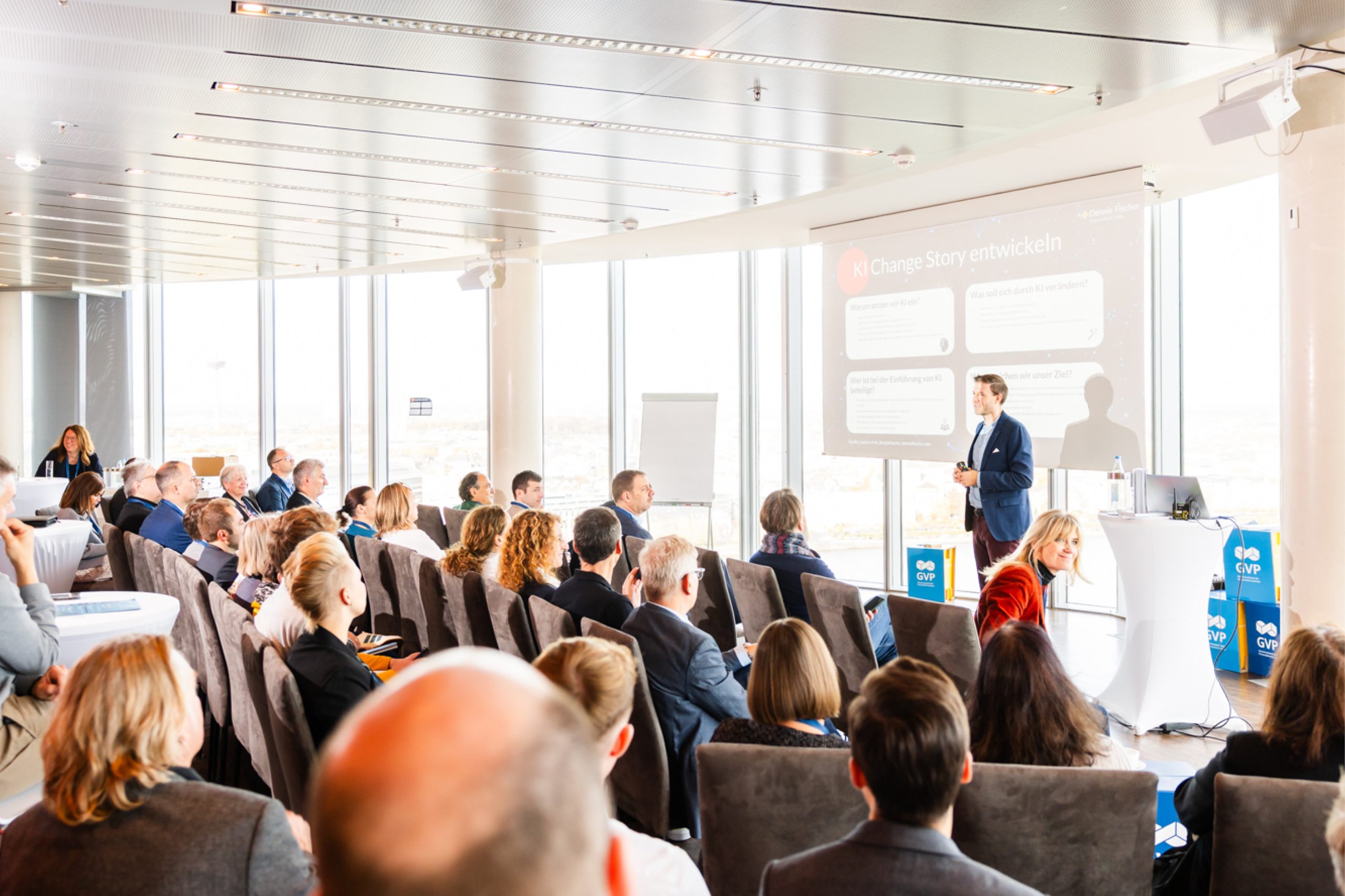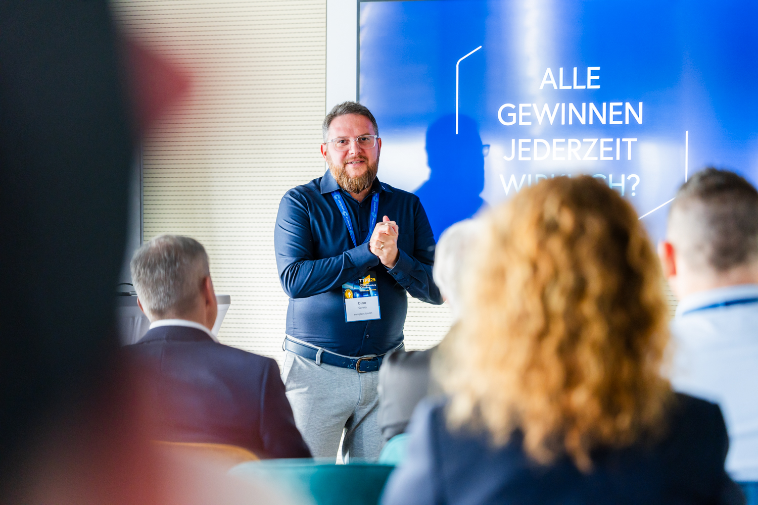 Der Auftakt des zweiten Veranstaltungstages bot sogleich jede Menge Gesprächsstoff, denn in seinem Impulsvortrag blickte Dennis Fischer, Autor und Trainer, in die Zukunft und stellte gleich vier provokante Thesen auf, welche die Zukunft der Arbeitswelt prägen würden. „Heute ist der langsamste Tag vom Rest unseres Lebens“, bekräftigte er, denn die Welt drehe sich immer schneller und in den nächsten zehn Jahren würde es mehr Veränderungen geben als in den letzten 100 Jahren zusammen. Die massivsten Veränderungen würden dabei in drei Bereichen passieren: Mindset, Skillset und Toolset. Jeder einzelne müsse sich dabei in jedem dieser Bereiche anpassen, um zukunftsfähig zu bleiben. KI sei in dem rasanten Veränderungsprozess kein Produktivitätsturbo, sondern ein Helfer, um menschlicher zu arbeiten und könne als Coach, Therapeut und Sparringspartner unterstützen, nicht nur als Werkzeug zur Effizienzsteigerung. Doch mindestens genauso wichtig wie KI sei auch Menschliche Intelligenz (MI). Diese dürfe nicht in Vergessenheit geraten und müsse bewahrt werden.